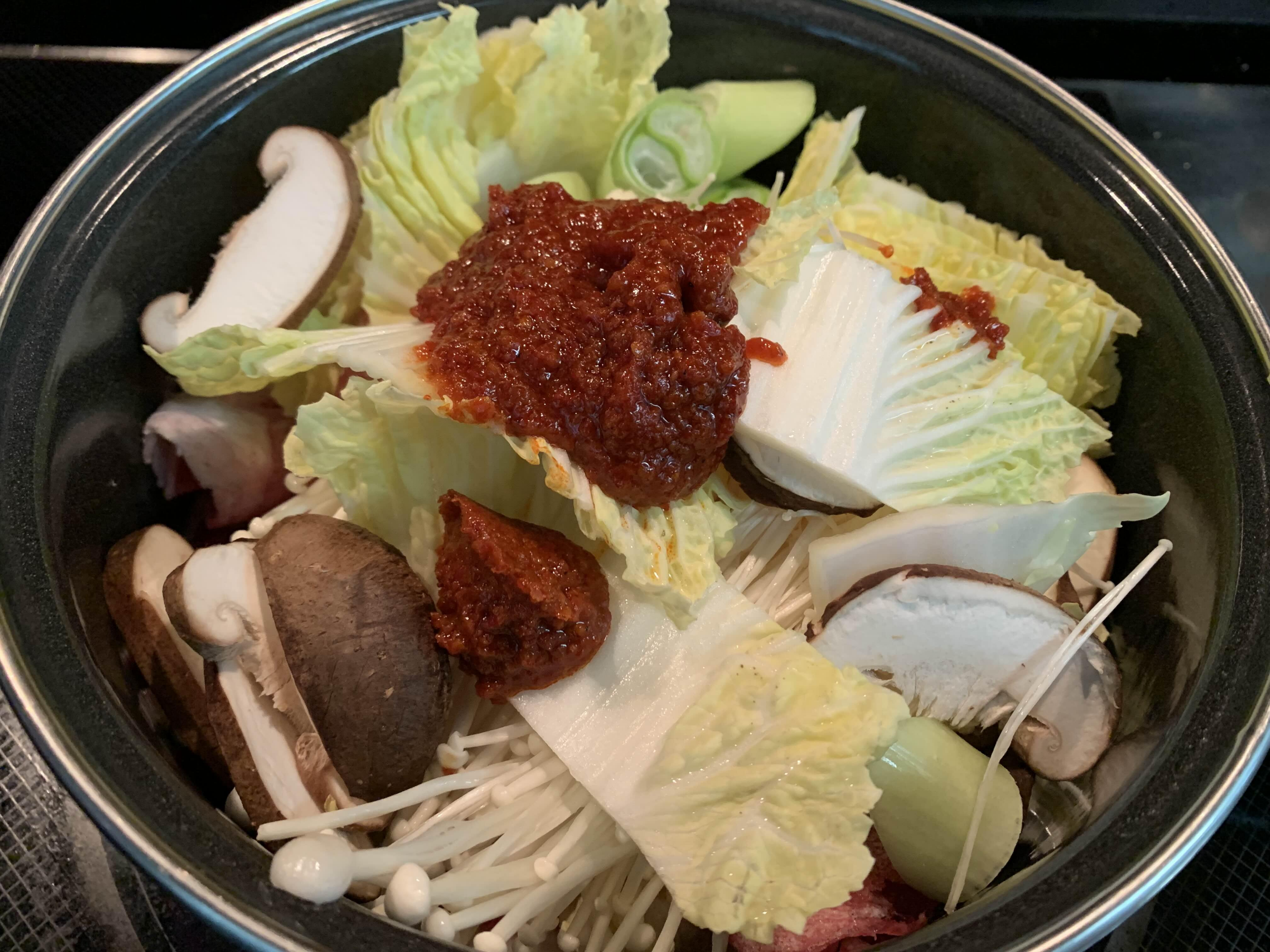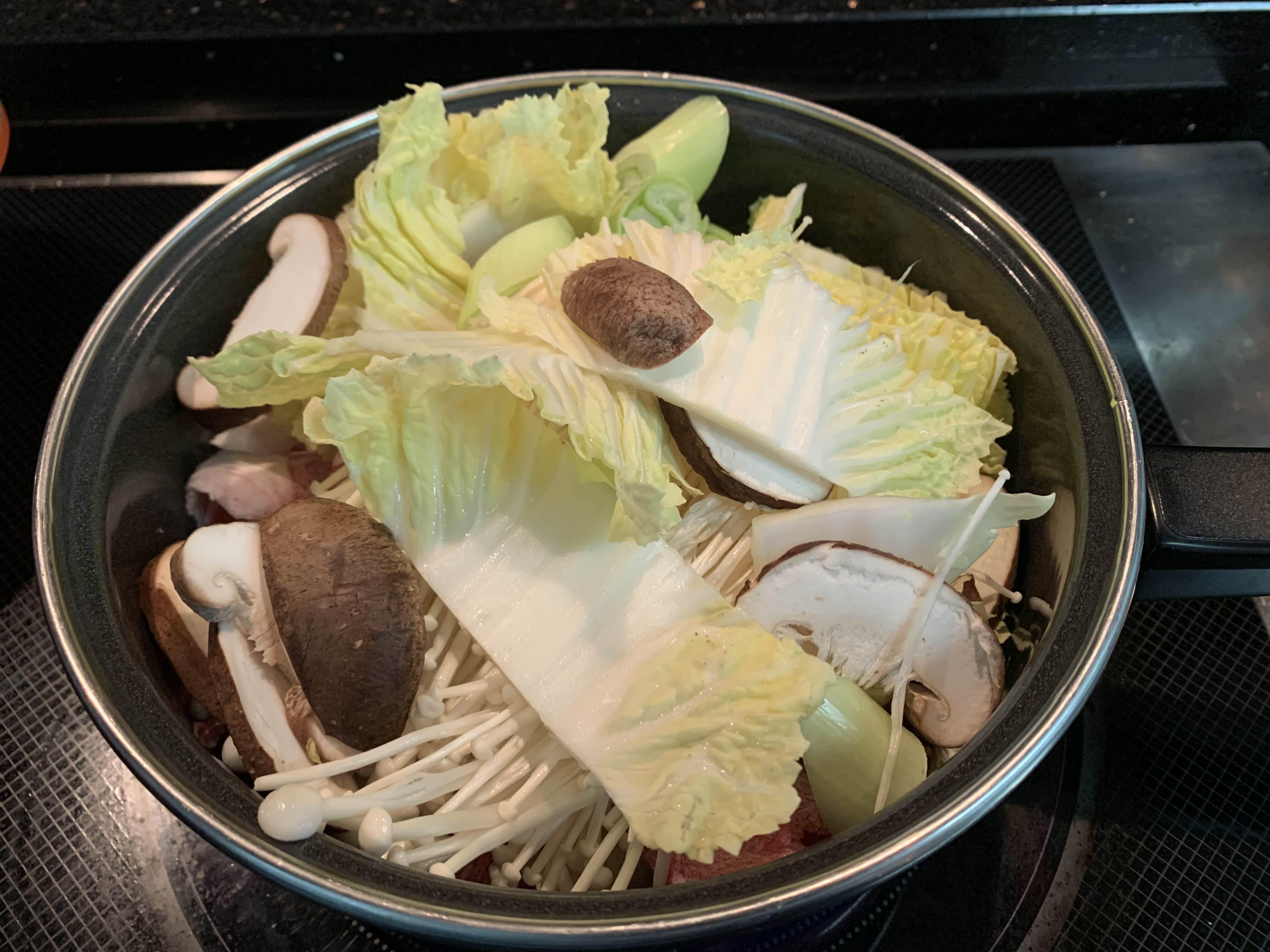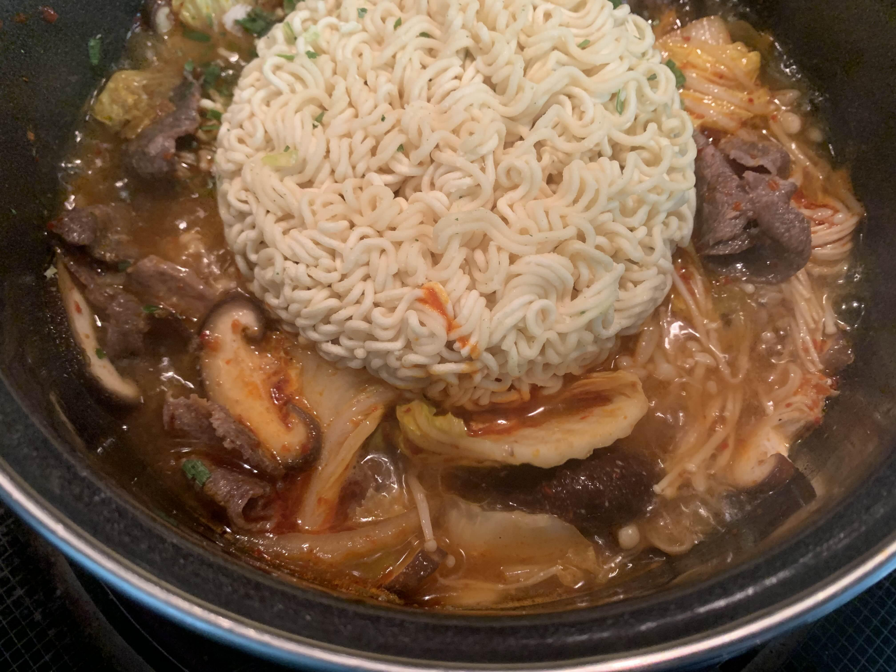 채소의 숨이 다 죽고 고기도 익었을 무렵 마지막에 면사리를 투척해 주세요