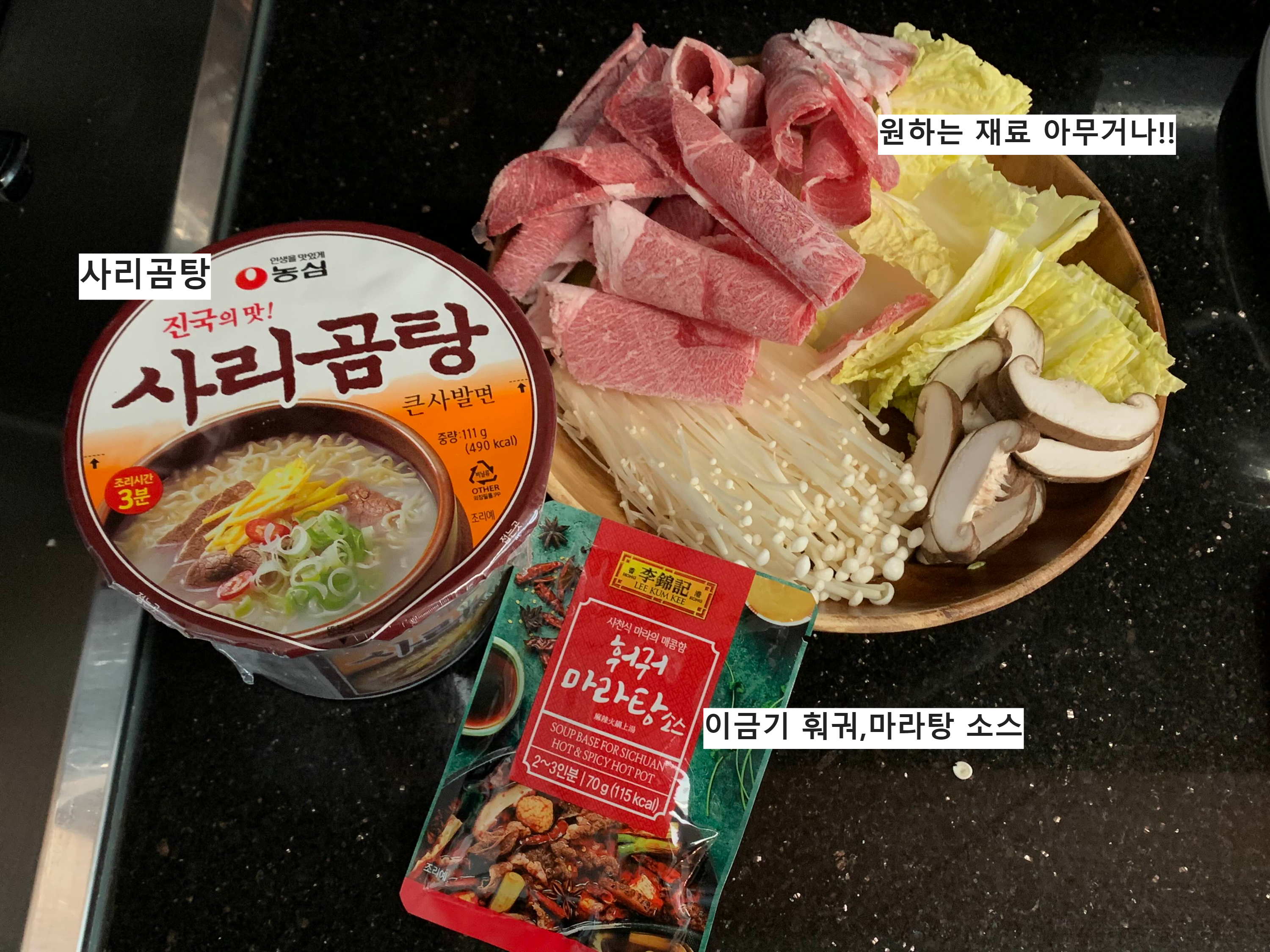 1. 사리곰탕면은 필수 (육수대신 써야 하기 때문)