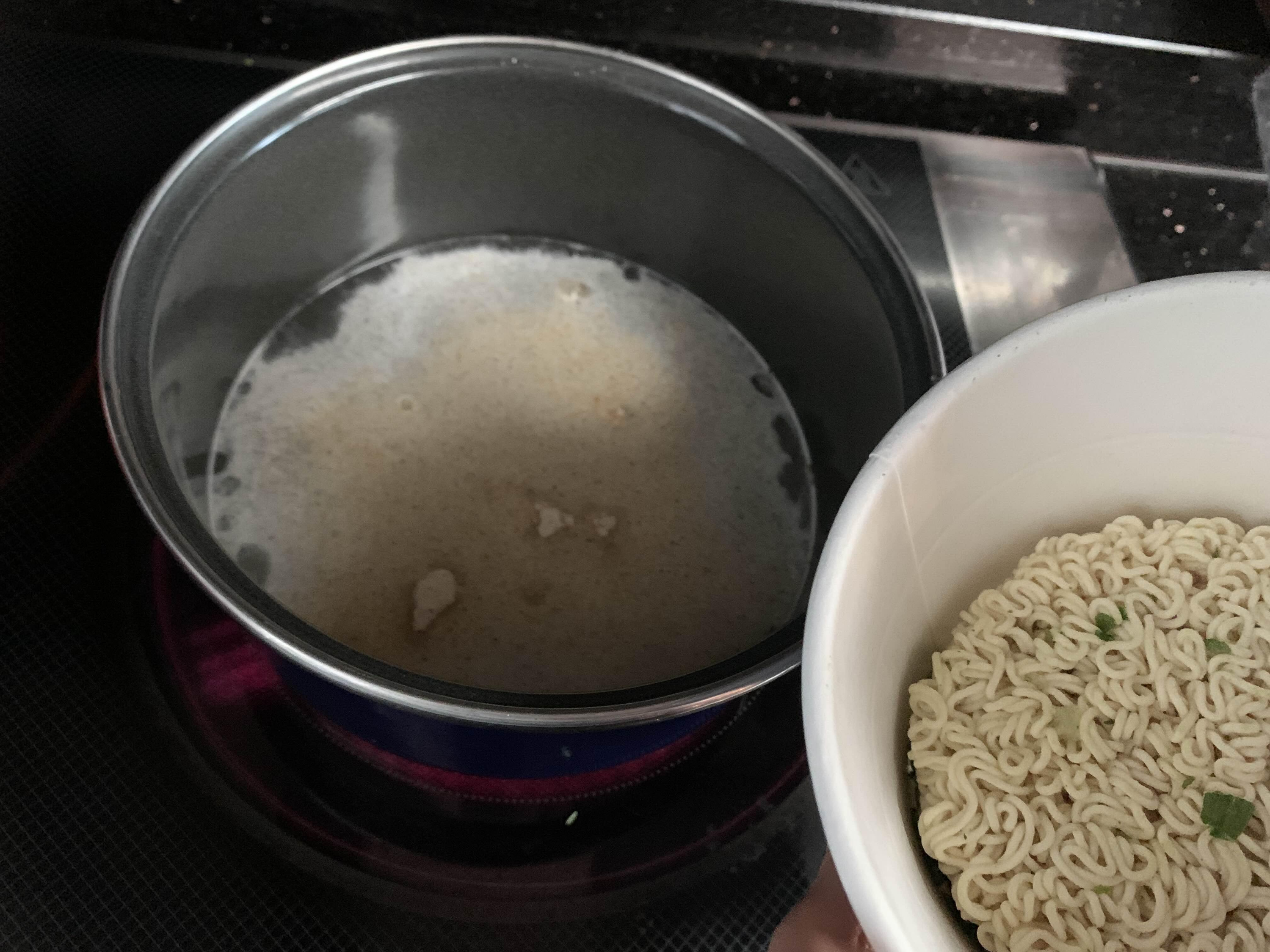 1. 냄비에 컵라면 용량보다 살짝 적게 물을 넣음