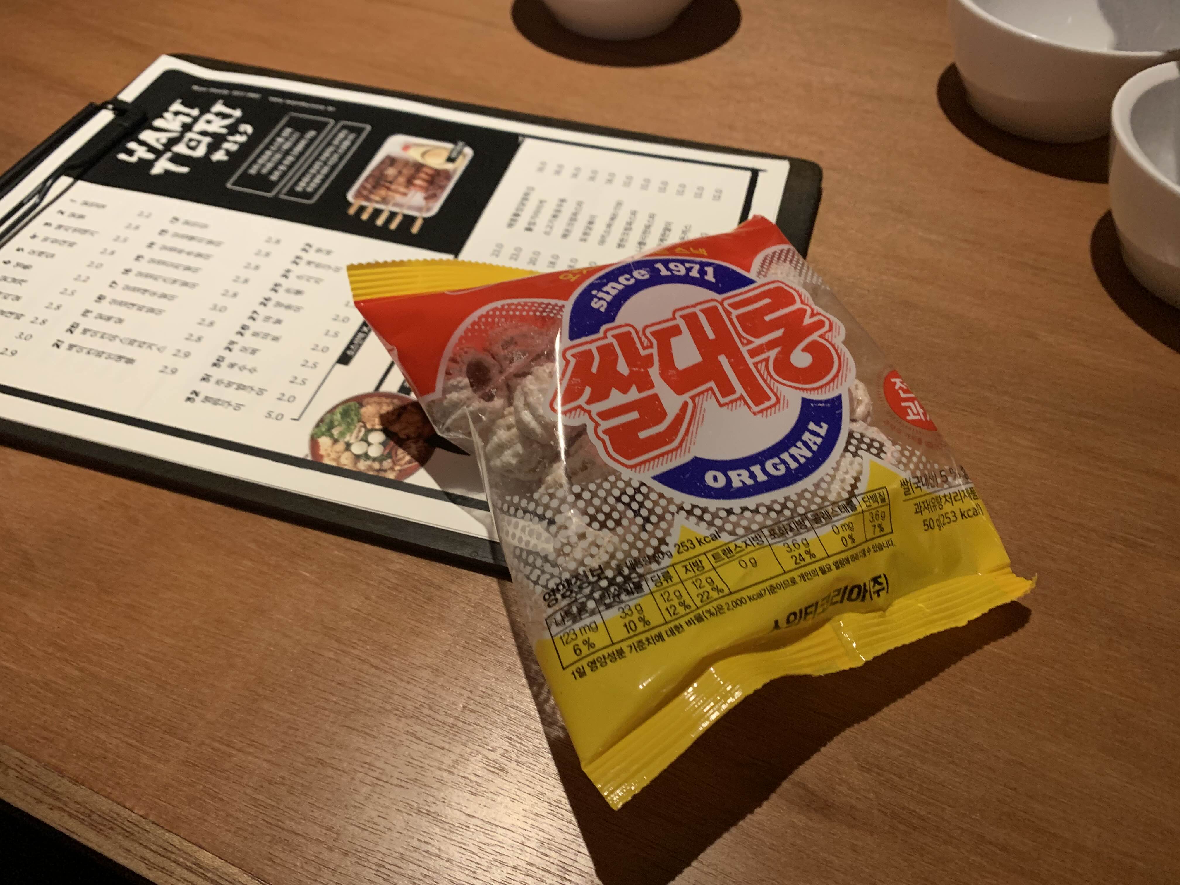 자리에 착석하면 메뉴판이랑 쌀대롱 과자를 1 봉지씩 주는 듯했다